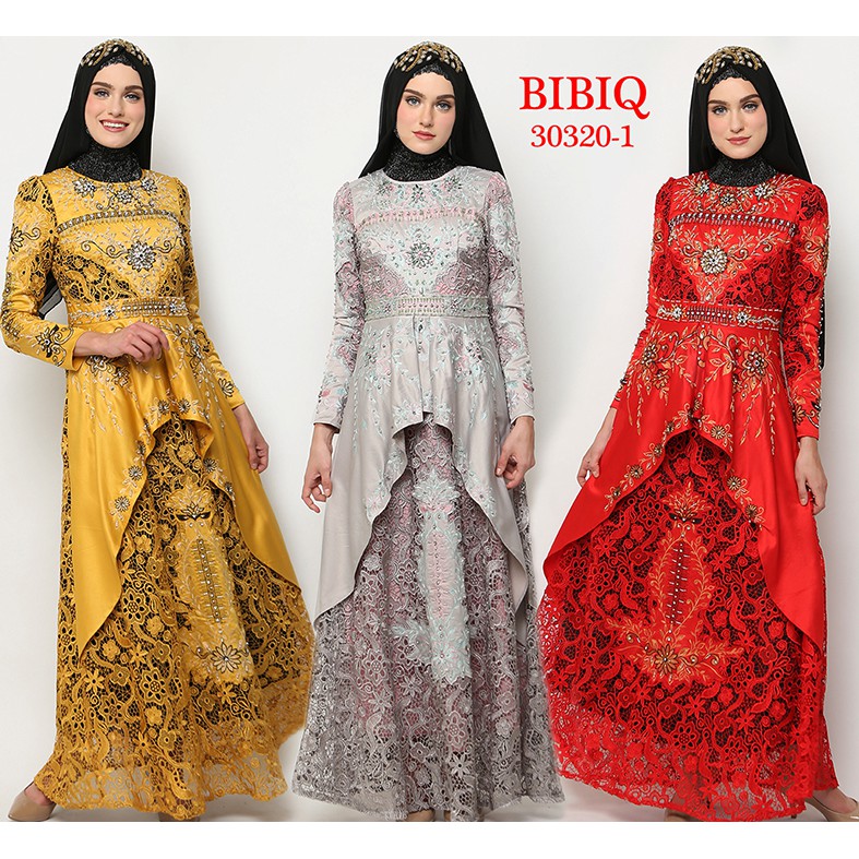 Gamis Pesta Baju Muslim Mewah BIBIQ Terbaru Bahan Brokat Satin 30320-1 | Shopee Indonesia