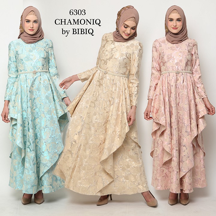 Gamis Pesta Baju Muslim Mewah Chamoniq By BIBIQ Terbaru Bahan JACQUARD 6303 | Shopee Indonesia