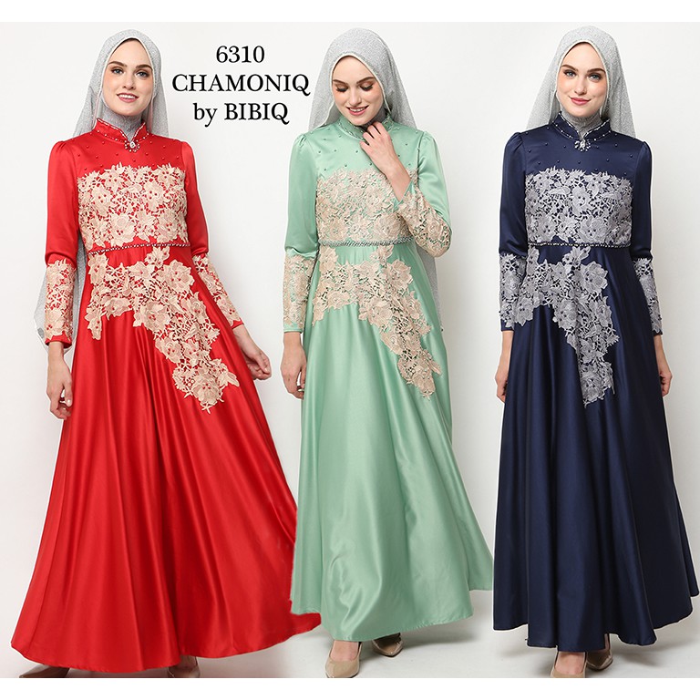 Gamis Pesta Baju Muslim Mewah Chamoniq By BIBIQ Terbaru Bahan Satin 6299 | Shopee Indonesia