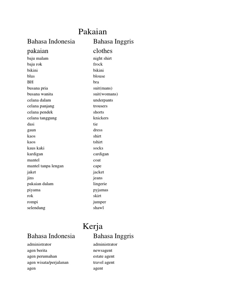 Ganti Baju Terjemahan Dalam Bahasa Inggris - Ganti Baju Dalam Sebuah Kalimat Dalam Bahasa Indonesia