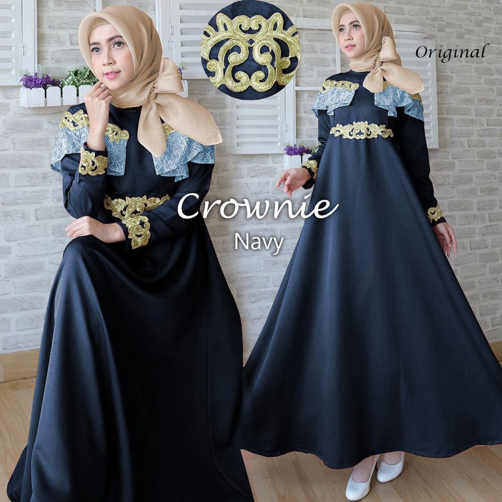 TERBARU BAJU GAMIS KOMBINASI BATIK GAMIS PESTA CROWNIE NAVY | Shopee Indonesia