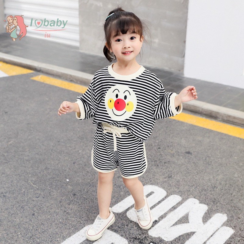 Set Baju Atasan Casual Lengan Pendek Motif Garis-Garis Gambar Kartun untuk Bayi Perempuan | Shopee Indonesia
