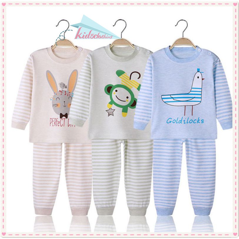 Set Piyama Lengan Panjang Gambar Kartun Motif Garis-Garis untuk Anak | Shopee Indonesia