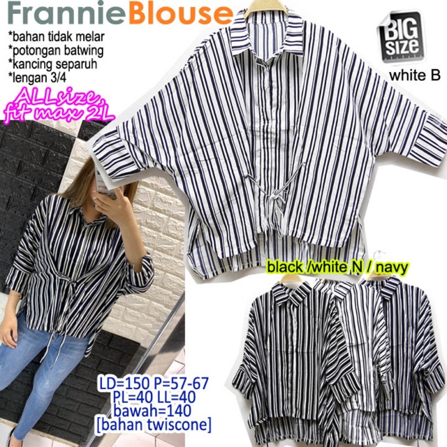 Atasan Baju Wanita Franie Blouse Garis Garis XXL JUMBO BIGSIZE | Shopee Indonesia