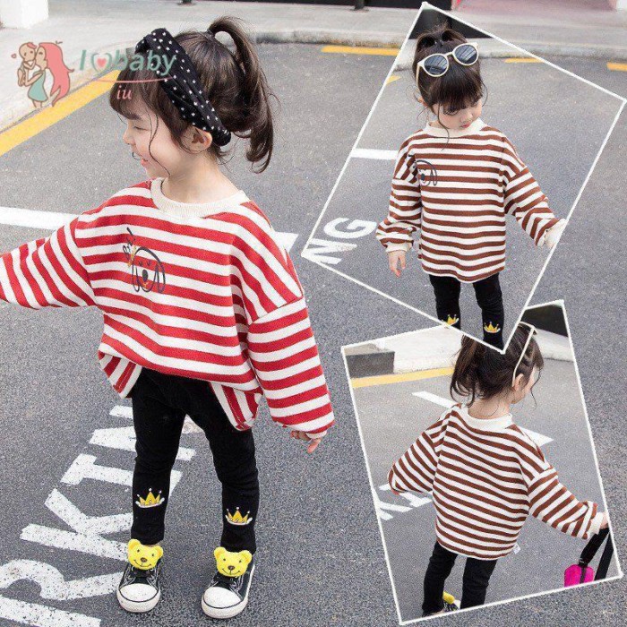 Baju Atasan Lengan Panjang dengan Motif Garis-Garis Gambar Rusa Kutub untuk Anak Perempuan 2-8 Tahun | Shopee Indonesia