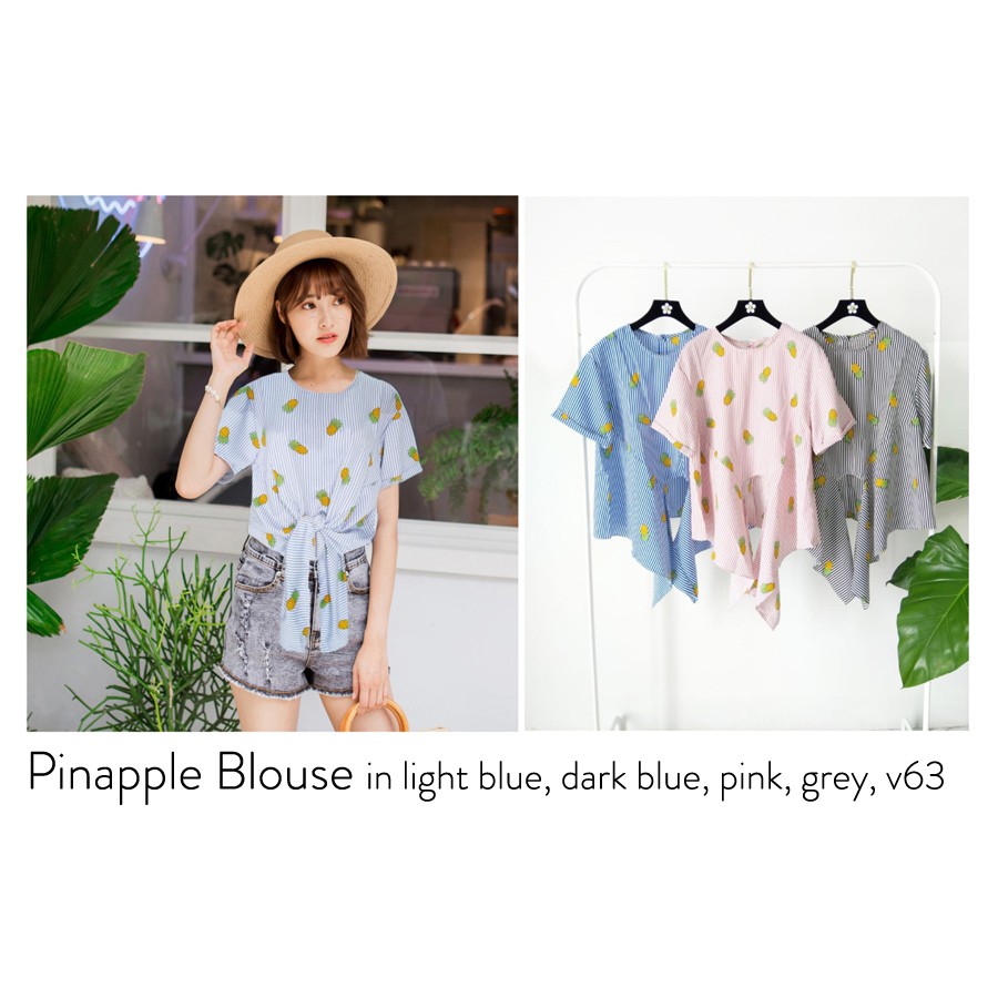Summer Blouse premium Import Baju Pantai Lengan pendek Ikat depan Motif gambar Nanas Hawai PINEAPPLE | Shopee Indonesia