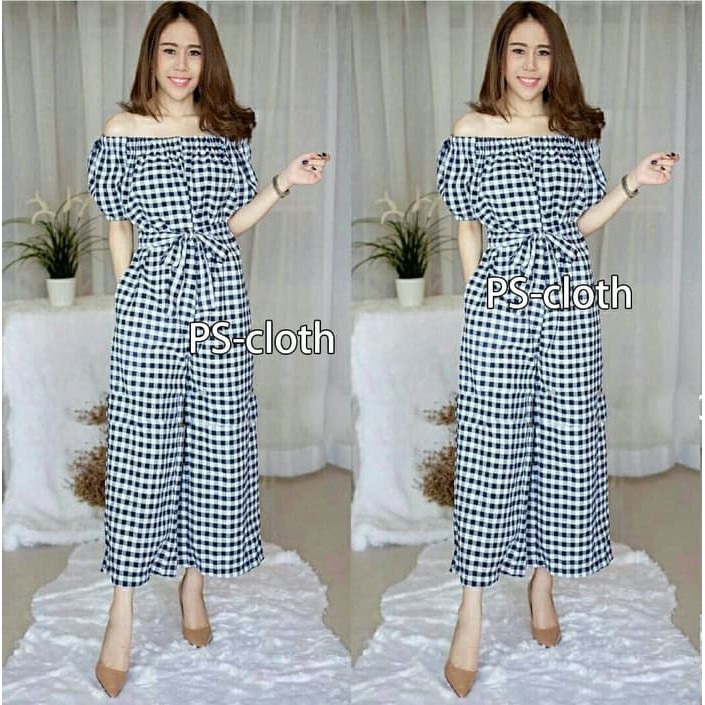 JUMPSUIT KATUN MOTIF KOTAK MODEL SABRINA / JUMPSUIT CELANA PANJANG | Shopee Indonesia