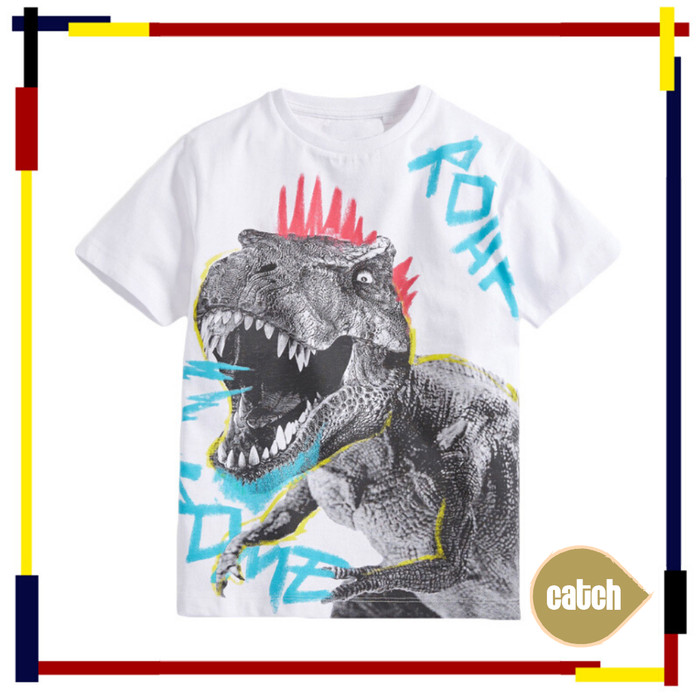 Jual Baju Kaos T-shirt Anak Laki-Laki Lengan Pendek Gambar Dinosaurus Putih - 6-T - Jakarta Barat - Catch id | Tokopedia