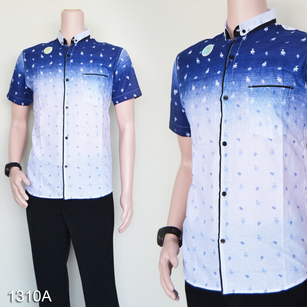 45 Gambar Baju Batik Pria Lengan Pendek Warna Biru Kekinian - modelbaju.id