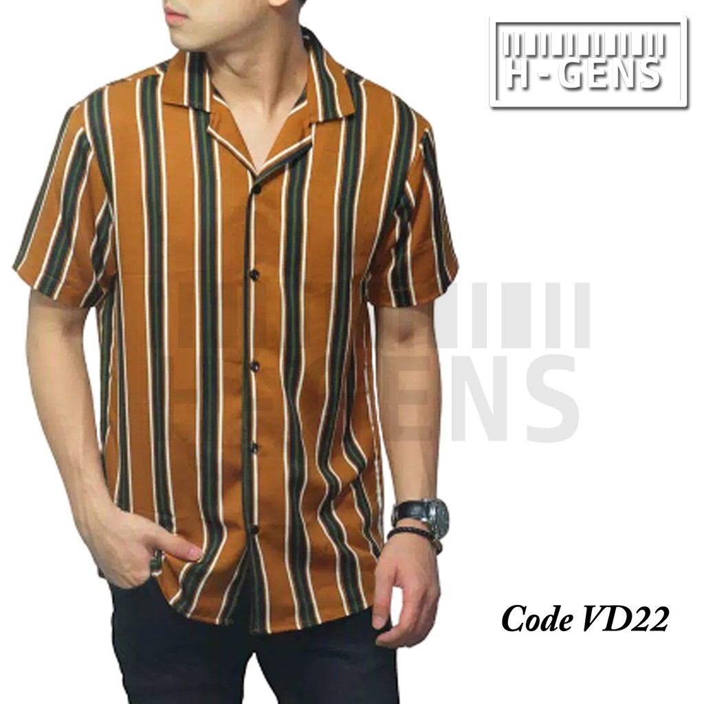 Kemeja pria kemeja stripe kemeja salur pria lengan pendek | Shopee Indonesia