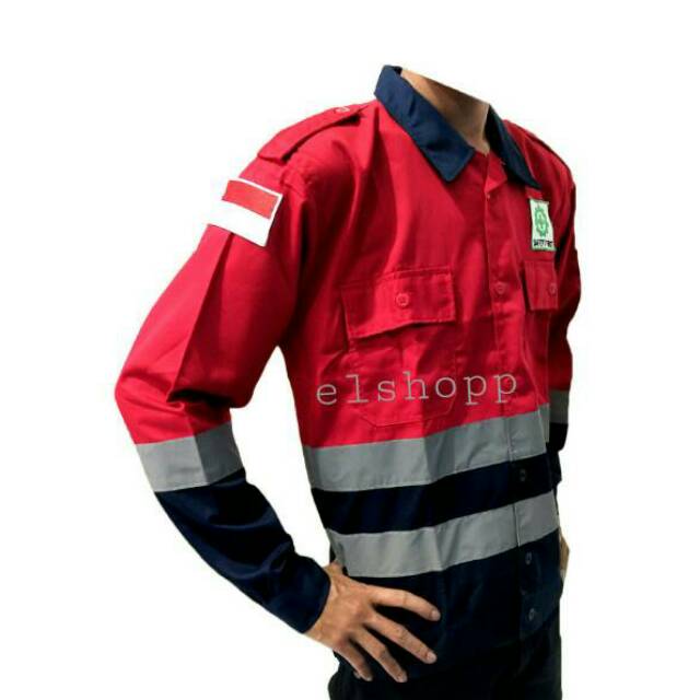 Baju kerja safety kombinasi+logo k3 & merah putih | Shopee Indonesia