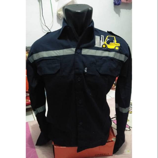 Baju kerja pria lengan panjang bordir alat berat operator forklip/seragam kerja safety | Shopee Indonesia