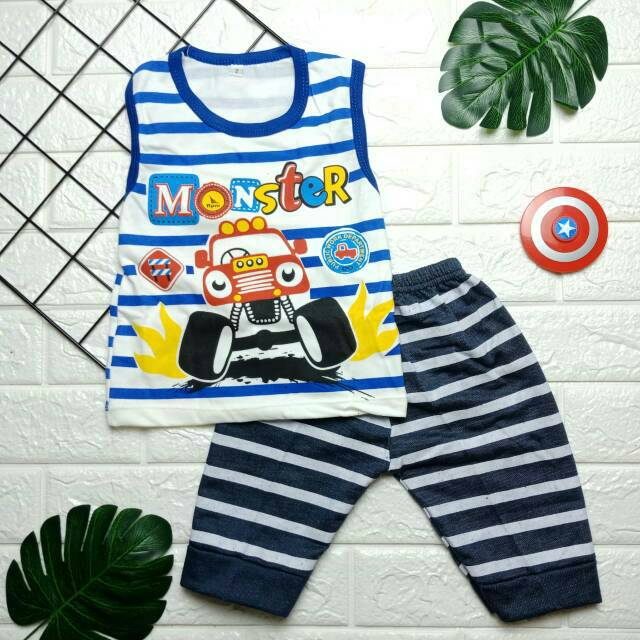 SETELAN SINGLET ANAK LAKI USIA 6-24 BULAN GAMBAR MONSTER | Shopee Indonesia