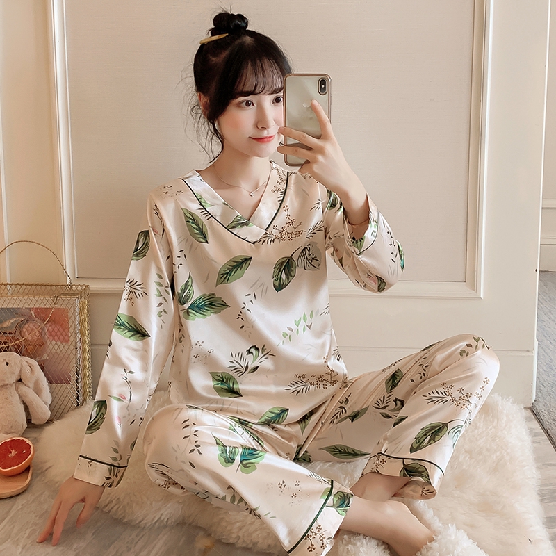 Jrmissli Wanita Piyama Set Gambar Baju Tidur Wanita Satin Flamingo Baju Tidur 2019 Musim Semi Sutra Elegan Memakai Rumah Fashion Pijama Mujer|Piyama Set| - AliExpress