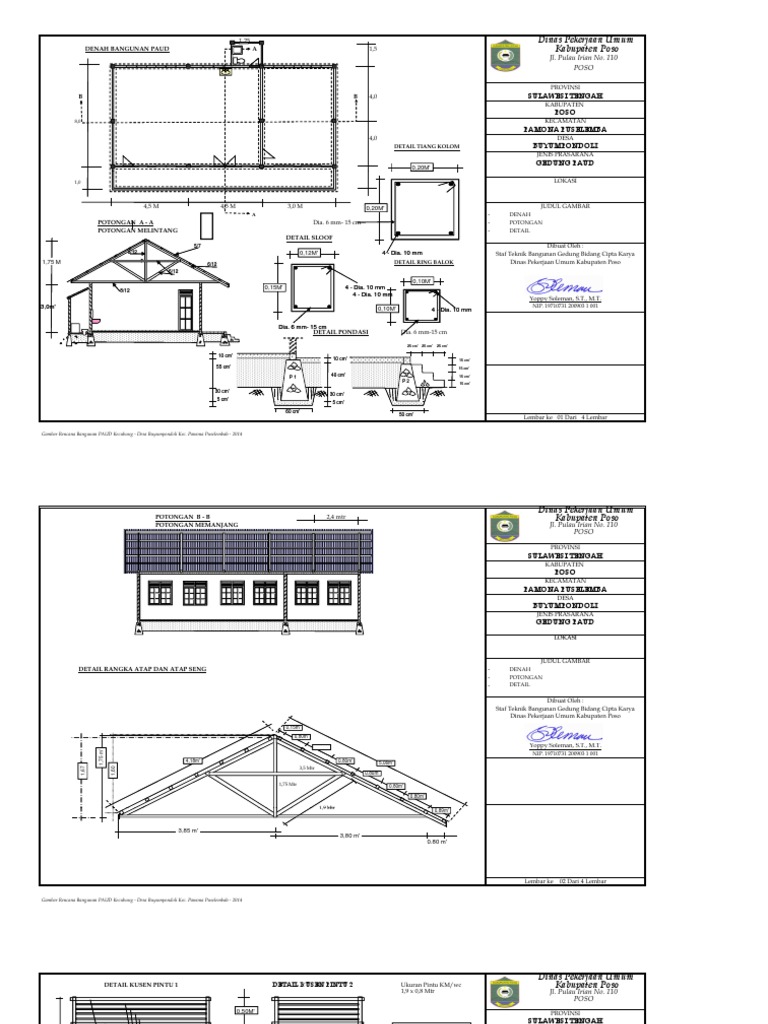 Gambar Rencana Bangunan PAUD Kecubung - Desa Buyumpondoli Kec. Pamona Puselemba - 2014