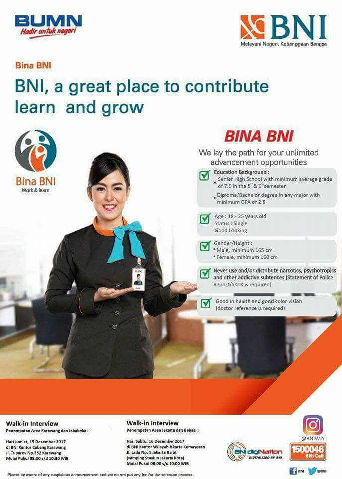 Lowongan Kerja BUMN Bank Negara Indonesia (BNI) Terbaru Agustus 2016