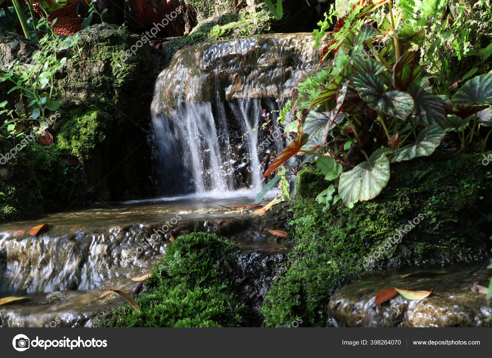 Gerakan Air Terjun Batu Dengan Lumut Hijau Dan Lichen Ini — Stok Foto © Au_hoo #398264070