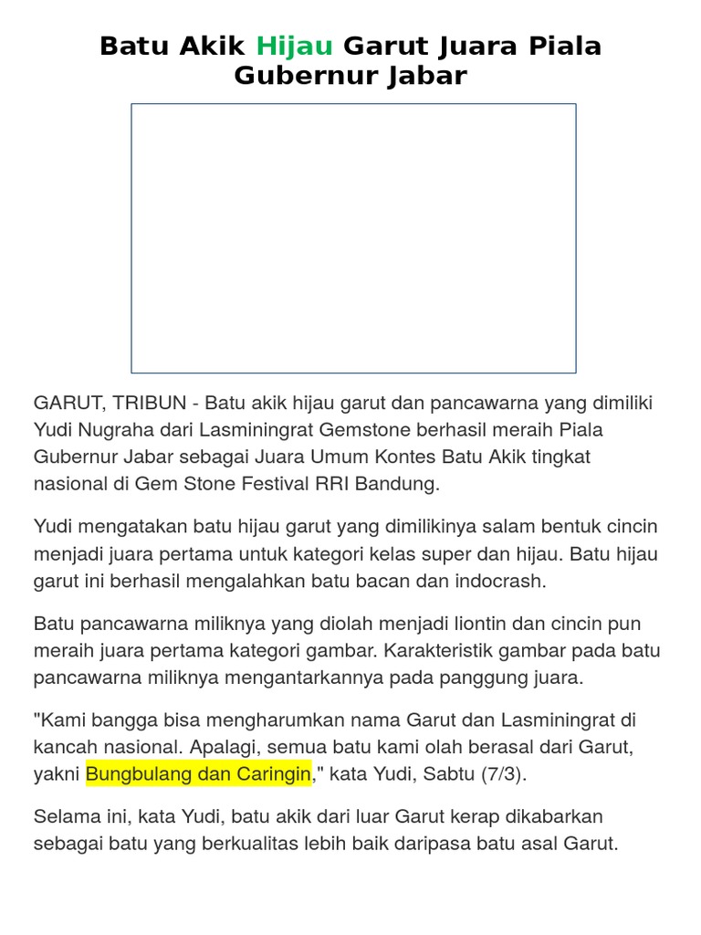 Batu Akik Hijau Garut Juara Piala Gubernur Jabar