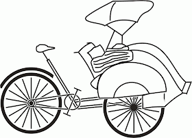 Gambar Becak Hitam Putih untuk Mewarnai • BELAJARMEWARNAI.info