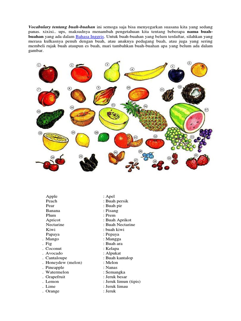 Nama buah buahan dalam bahasa Inggris dan Indonesia | Bahasa inggris, Bahasa, Inggris