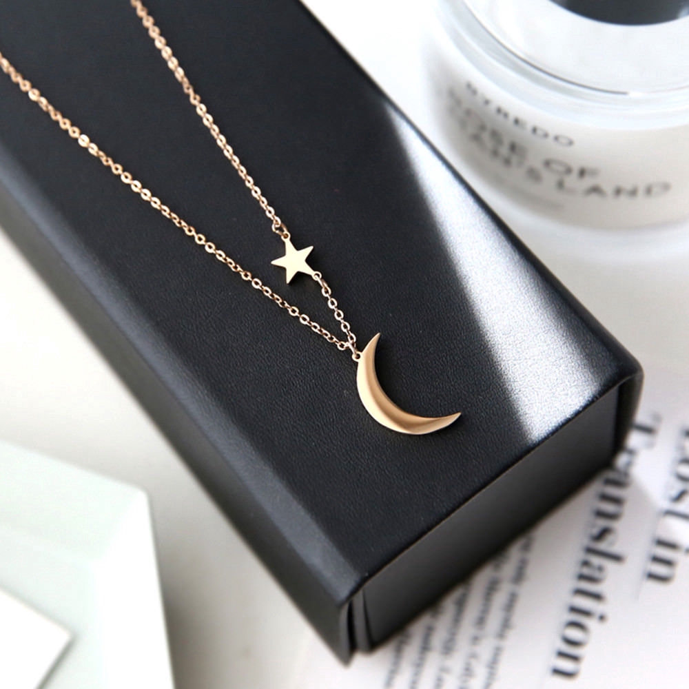 Kalung Rantai Liontin Bulan Sabit+Bintang untuk Aksesoris Perhiasan Wanita | Shopee Indonesia