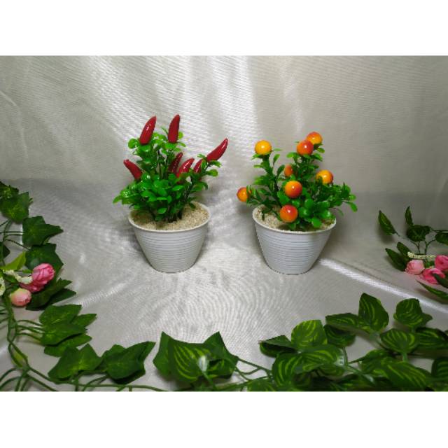 Pot + tanaman cabai artificial tanaman palsu bunga plastik tanaman artificial hiasan dinding rumah | Shopee Indonesia