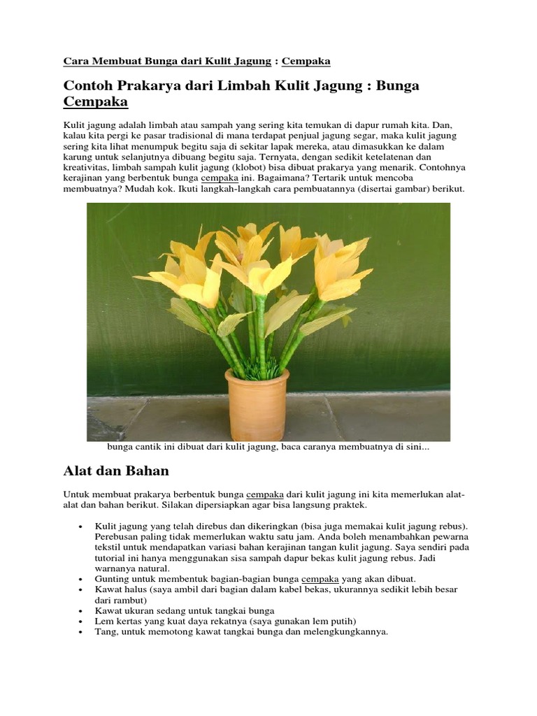 Cara Membuat Bunga dari Kulit Jagung : Cempaka | Bunga, Kulit, Jagung