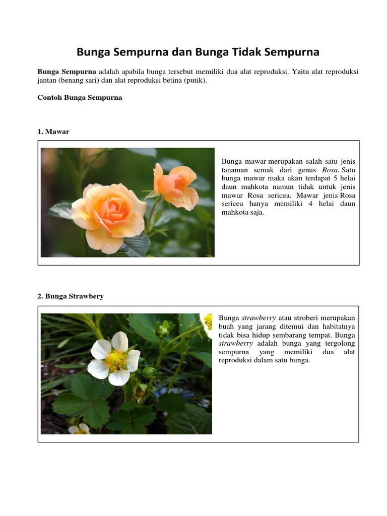 Contoh Lengkap Bunga Sempurna dan Tidak Sempurna