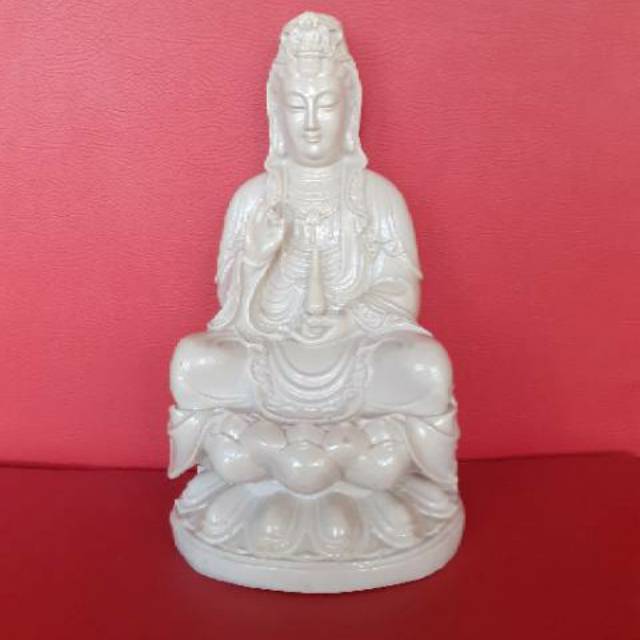Patung Dewi Kwan Im (Kuan Yin) Bersila Memegang Kendi diatas Lotus 8 | Shopee Indonesia