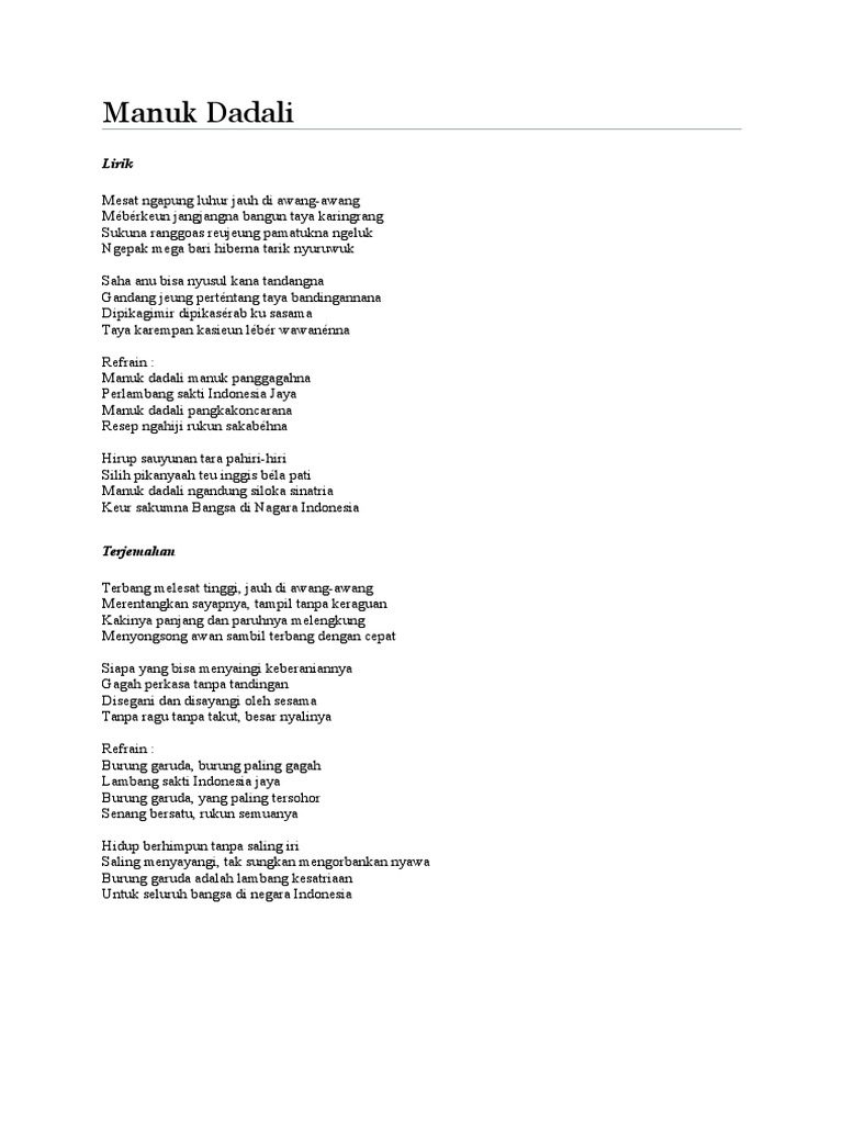 Lirik Lagu Manuk Dadali Versi Inggris yang Mendunia Halaman 1 - Kompasiana.com