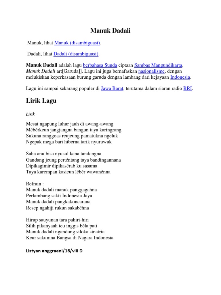 Lirik Lagu Manuk Dadali - Info Kuliah dan Sumber Referensi Terlengkap