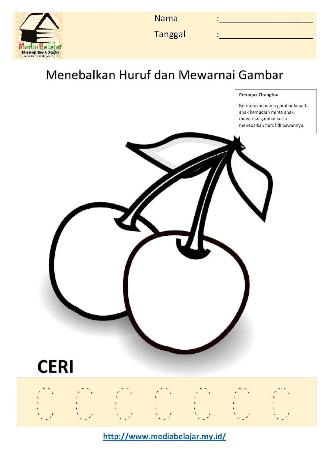 Menebalkan Huruf C dan Mewarnai Gambar Ceri
