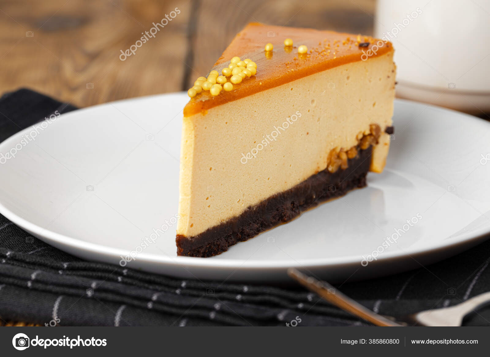 Sepotong kue keju di piring putih di atas meja — Stok Foto © Fotofabrika #385860800