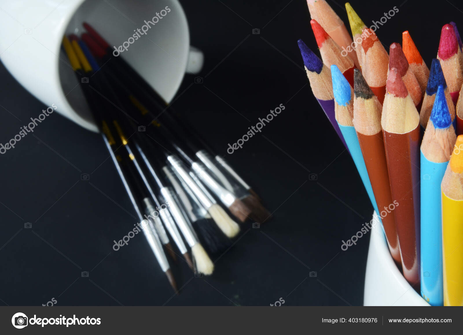Pensil Warna Kuas Cat Dan Palet Cat Air Kembali Sekolah Stok Foto © pacoadame #403180976