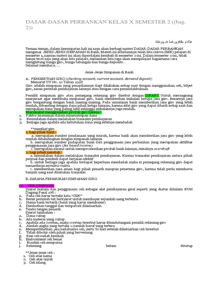 Dasar-Dasar Perbankan Kelas X Semester 2 ((Bag. 2))