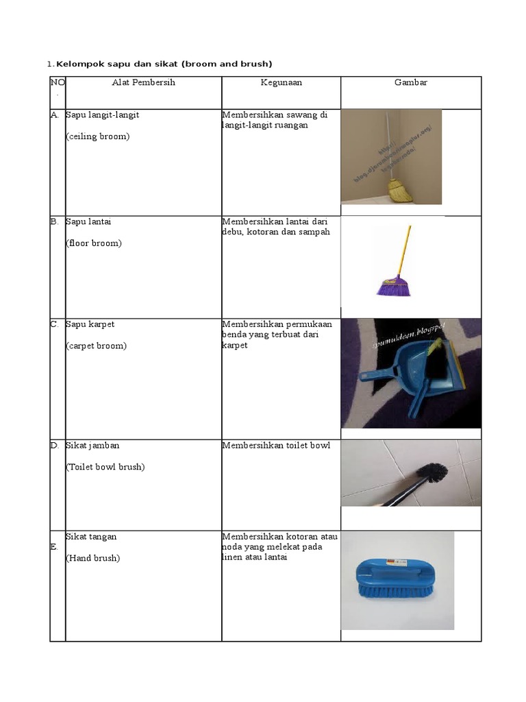 Alat Pembersih Kegunaan Gambar. Membersihkan sawang di langit-langit ruangan. Membersihkan lantai dari debu, kotoran dan sampah - PDF Download Gratis