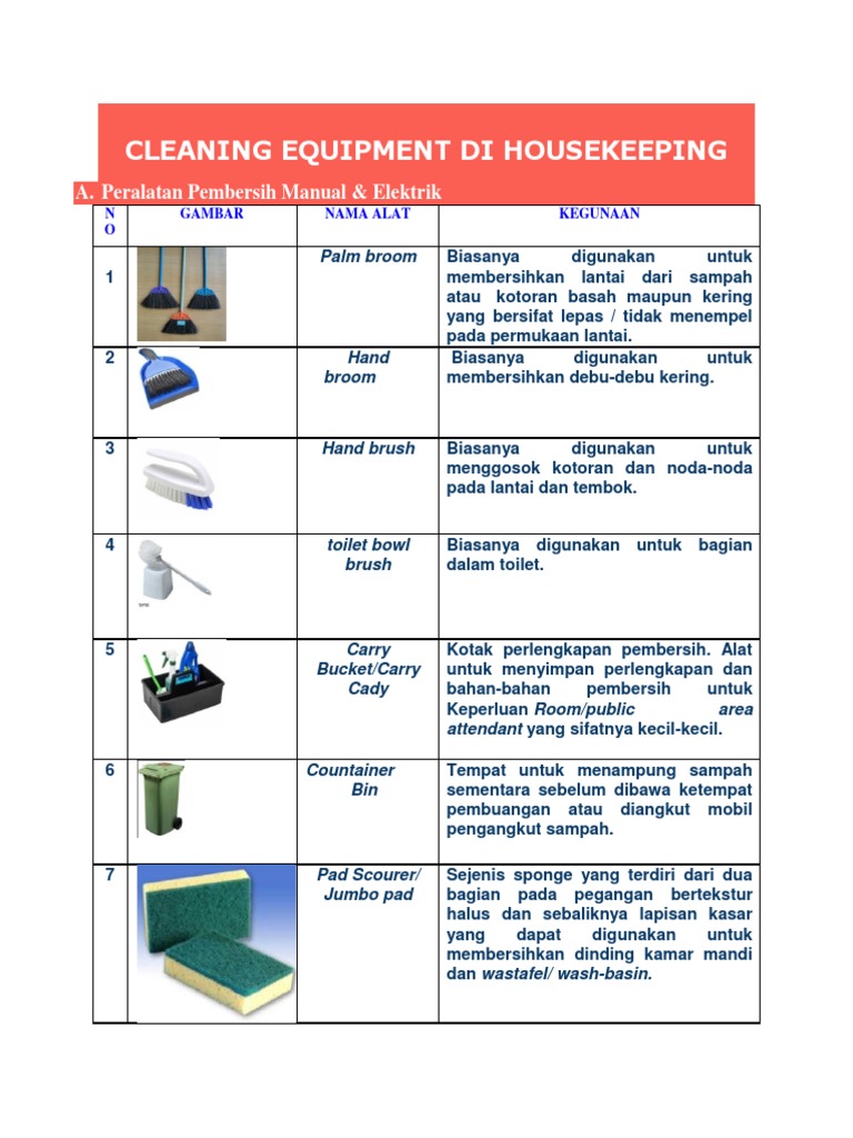 PERALATAN YANG DIGUNAKAN DI HOUSEKEEPING BERSERTA KEGUNAANYA.docx