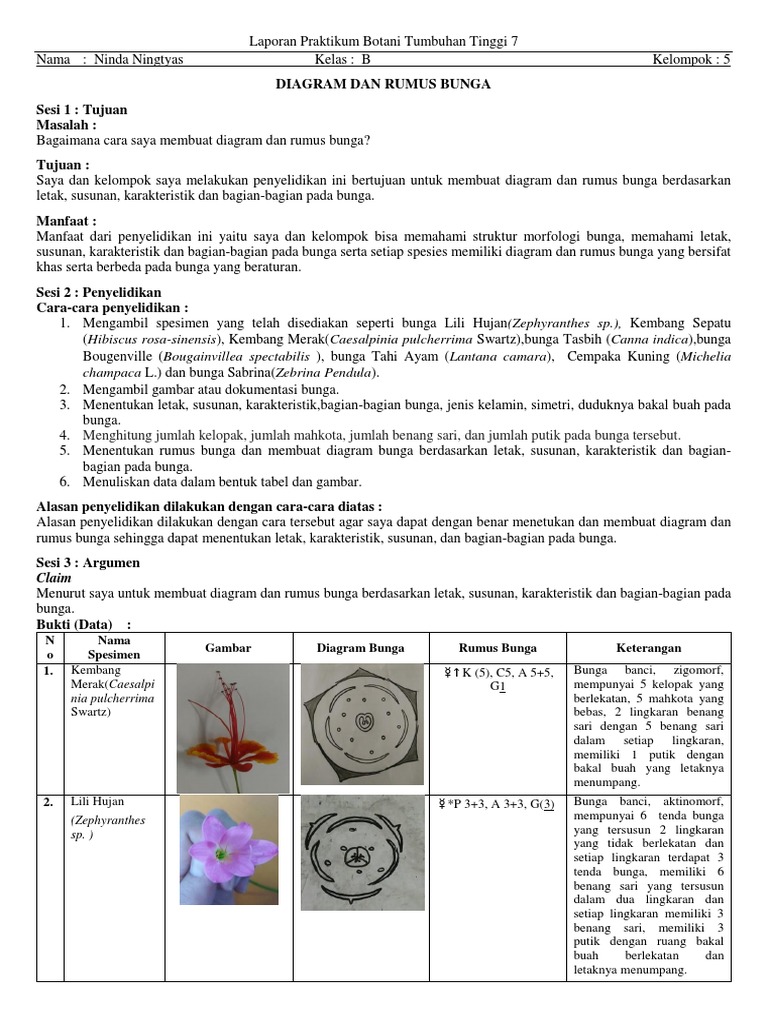 DOC) LAPORAN PRAKTIKUM MORFOLOGI TUMBUHAN - RUMUS BUNGA DAN DIAGRAM BUNGA (FLOS) | Deby Noviyanti - Academia.edu