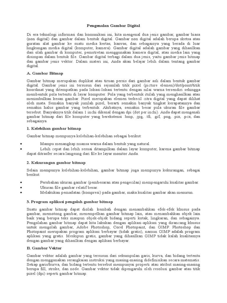 GAMBAR DIGITAL Gambar digital adalah gambar yang dihasilkan oleh olah komputer, kamera digital atau media lain yang dapat mengolah citra (image). Adap - PDF Download Gratis