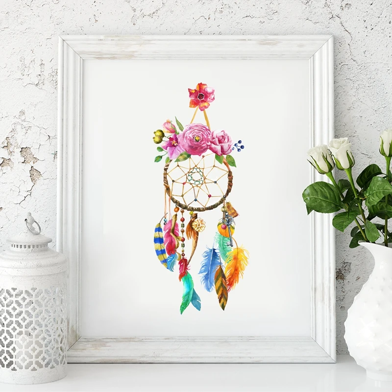 Bulu Dreamcatcher Bunga Cat Air Lukisan Kanvas Seni Poster Cetakan Dream Catcher BoHo Gambar Dinding Seni Dekorasi|Painting & Calligraphy| - AliExpress
