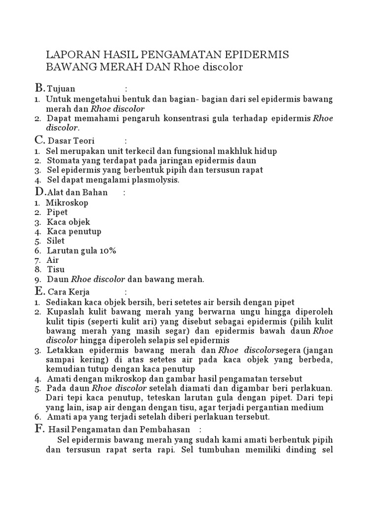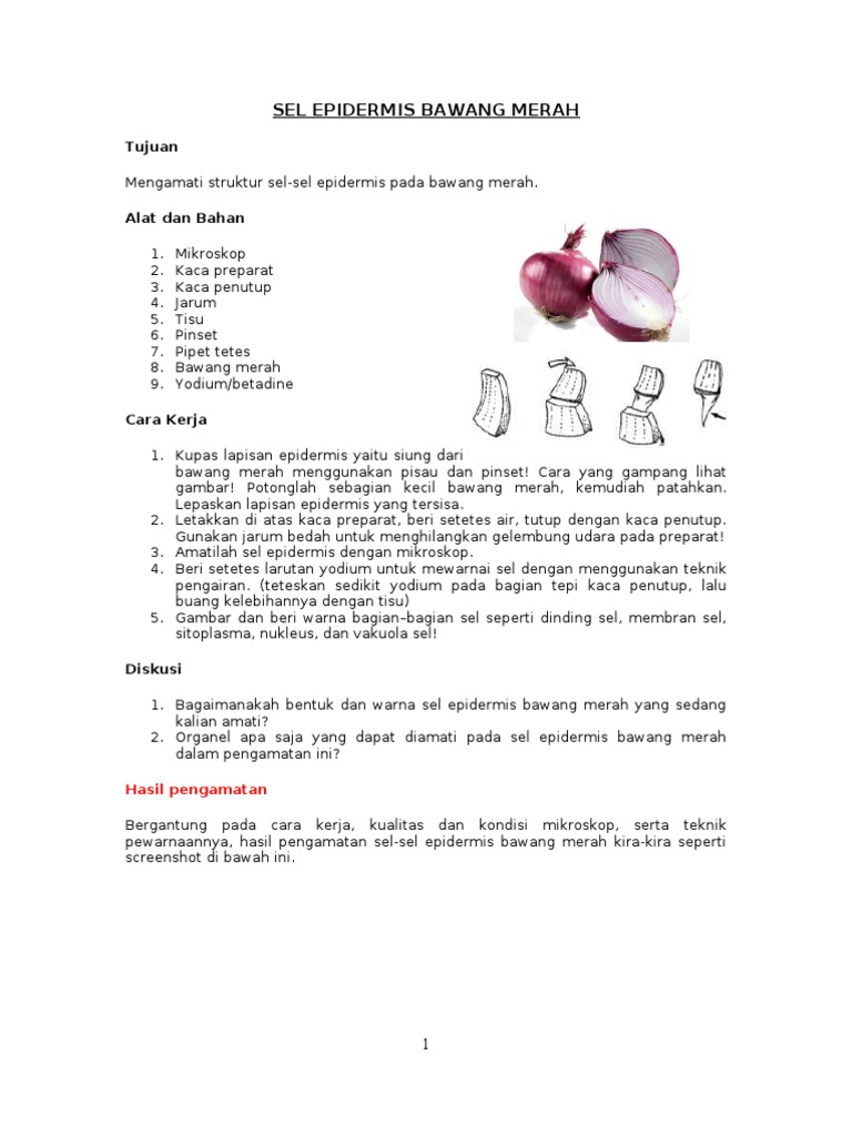 DOC) LAPORAN HASIL PENGAMATAN SEL-SEL EPIDERMIS BAWANG MERAH Tujuan Mengamati struktur sel-sel epidermis pada bawang merah | Muhamad Blg - Academia.edu