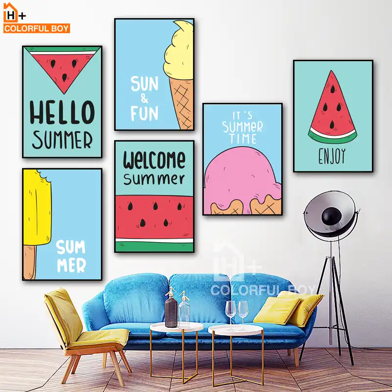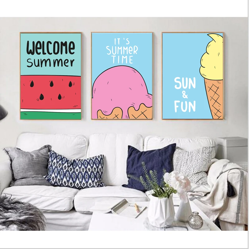 Colorfulboy Es Krim Semangka Poster dan Cetakan Kanvas Lukisan Dinding Seni Cetak Kanvas Gambar untuk Living Room Dekorasi| | - AliExpress