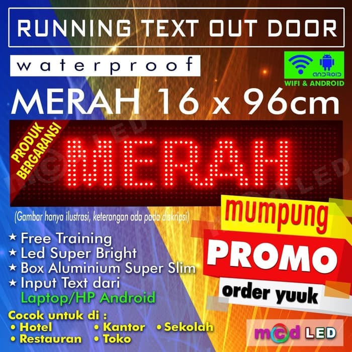 Jual Running Text RGB 100cm x 20cm Wifi or USB Outdoor LED Display - Jakarta Timur - Bonafid | Tokopedia
