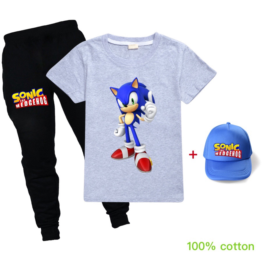 Set Kaos T-Shirt Anak Laki-Laki/Perempuan Gambar Kartun Sonic The Hedgehog+Celana Pendek+Topi | Shopee Indonesia