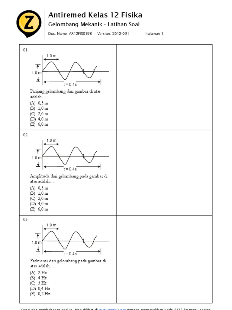 Soal dan Pembahasan Gelombang Mekanik - Ayo Sekolah Fisika