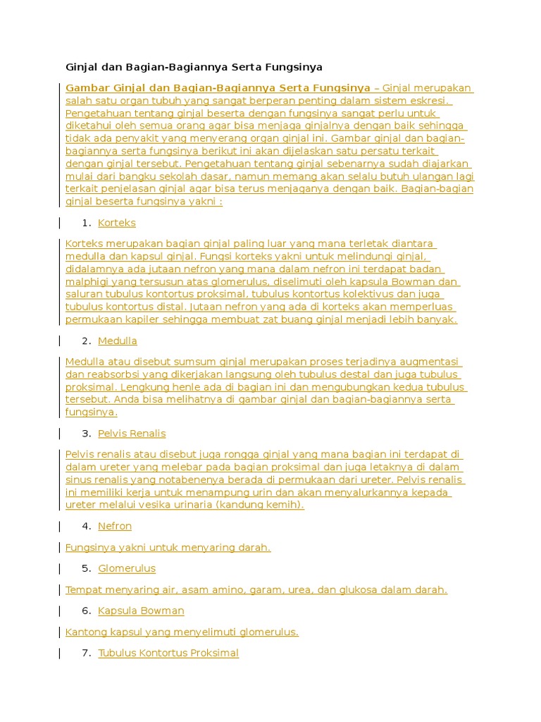 Sebutkan Bagian Bagian Ginjal Dan Jelaskan? - Brainly.co.id