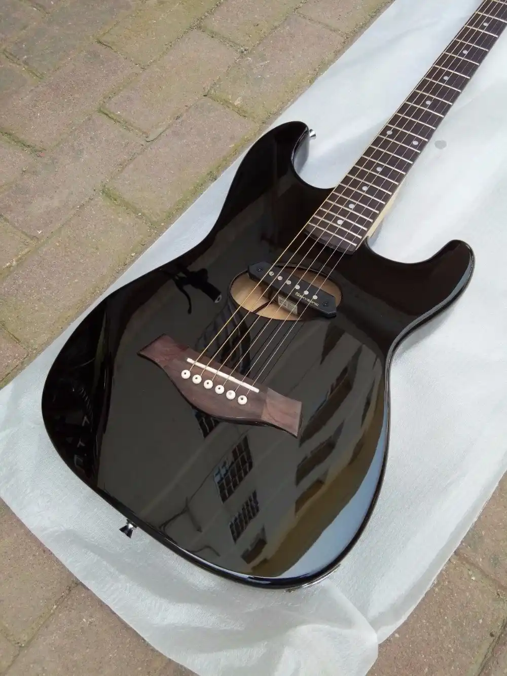 Semi Berongga Gitar Listrik Bjst Tubuh Hitam Menginstal Pickup dengan Akustik String BJ 34| | - AliExpress