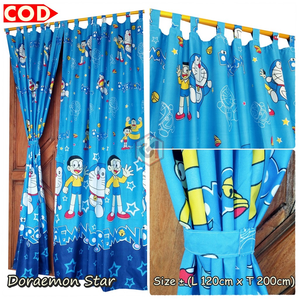 Gorden Pintu Jendela Ukuran L 120 x 200cm Model Tali Perekat Motif Doraemon Star Jahitan Kuat Rapi | Shopee Indonesia