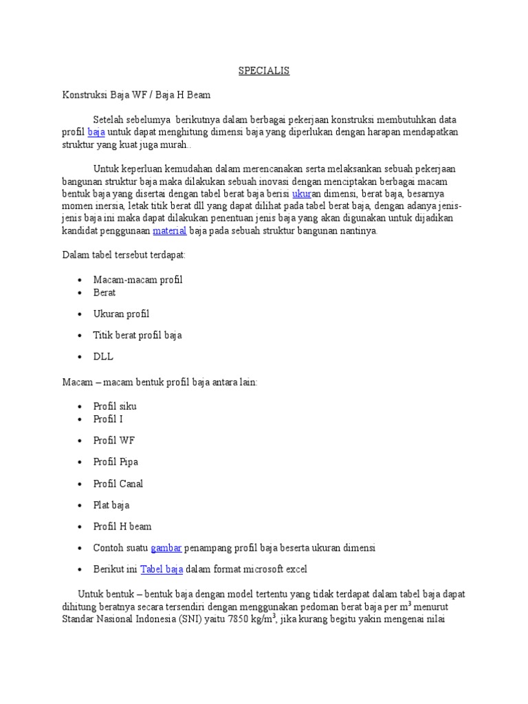 Tabel Baja Profil H Beam, Apa Beda dengan WF? | arsitekta.com