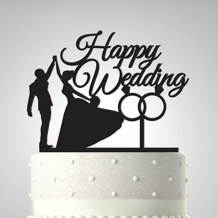 BIG SALE HAPPY WEDDING BLACK ACRYLIC CAKE TOPPER !!!!! | Shopee Indonesia